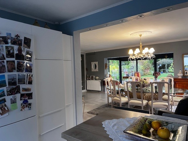 Au sein d'un univers chic et arboré, proche de la croix blan. À Bondues, Miss-Immo vous présente, au coeur d'un domaine verdoyant et prisé, cette belle maison semi-individuelle édifiée sur une parcelle de 785 m2.Elle s'ouvre sur une entrée chaleureuse avec toilettes et placards, donnant accès au garage ainsi qu'à la buanderie. La cuisine équipée et aménagée, dans un style actuel, est entièrement ouverte sur une spacieuse pièce de vie de 67 m2, sublimée par une véranda lumineuse offrant une vue dégagée sur le jardin arboré, parfaitement exposé (Lumière et soleil au long de la journée).