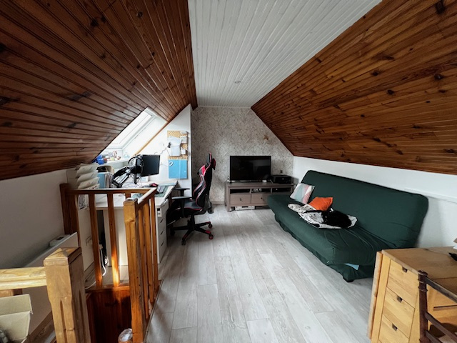 Un escalier en colimacon amène au grenier amenage (bureau ou chambre).